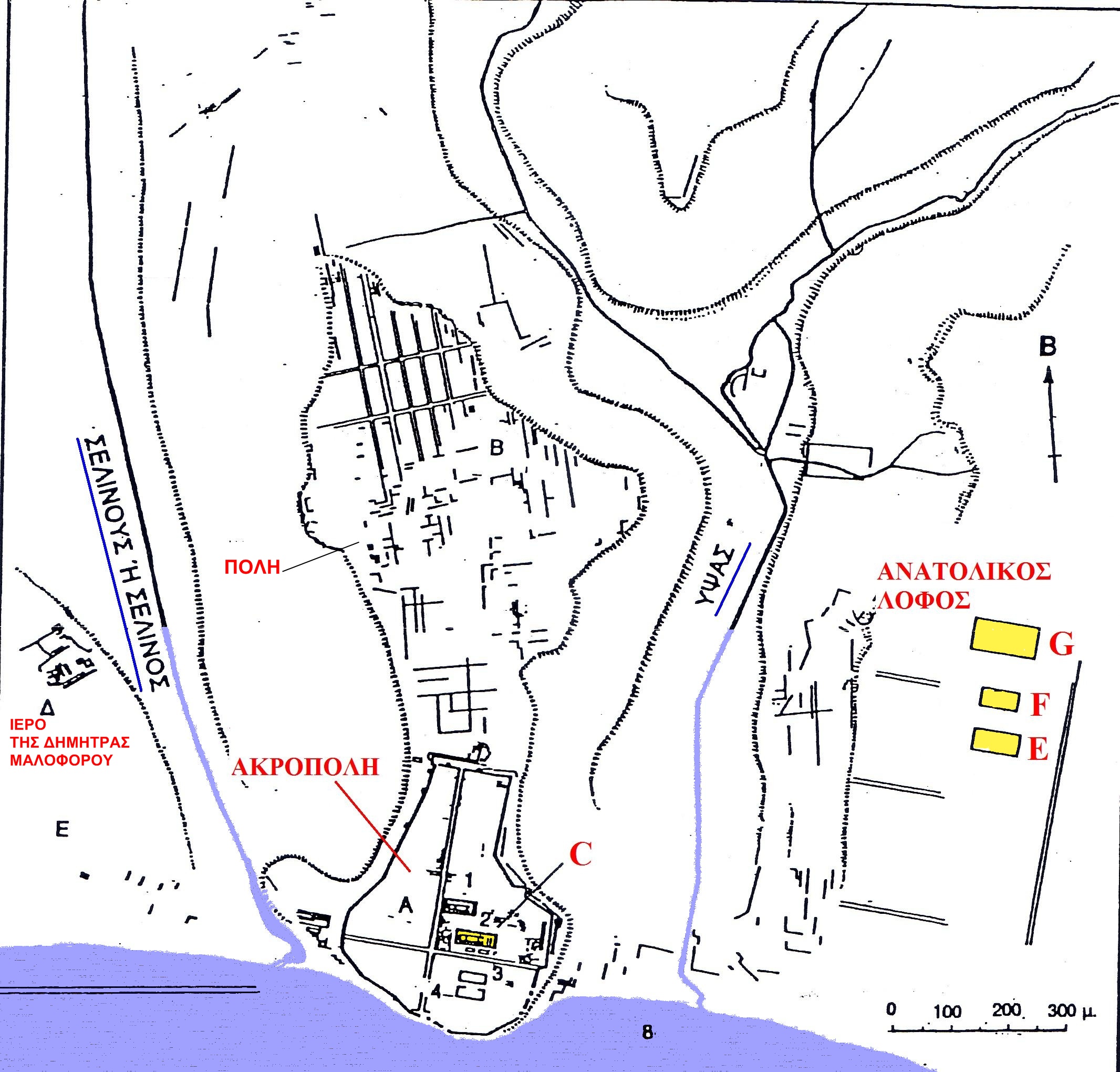 300 μ. περίπου που καλύπτει το κεντρικό τμήμα της πόλης από το βόρειο μέχρι