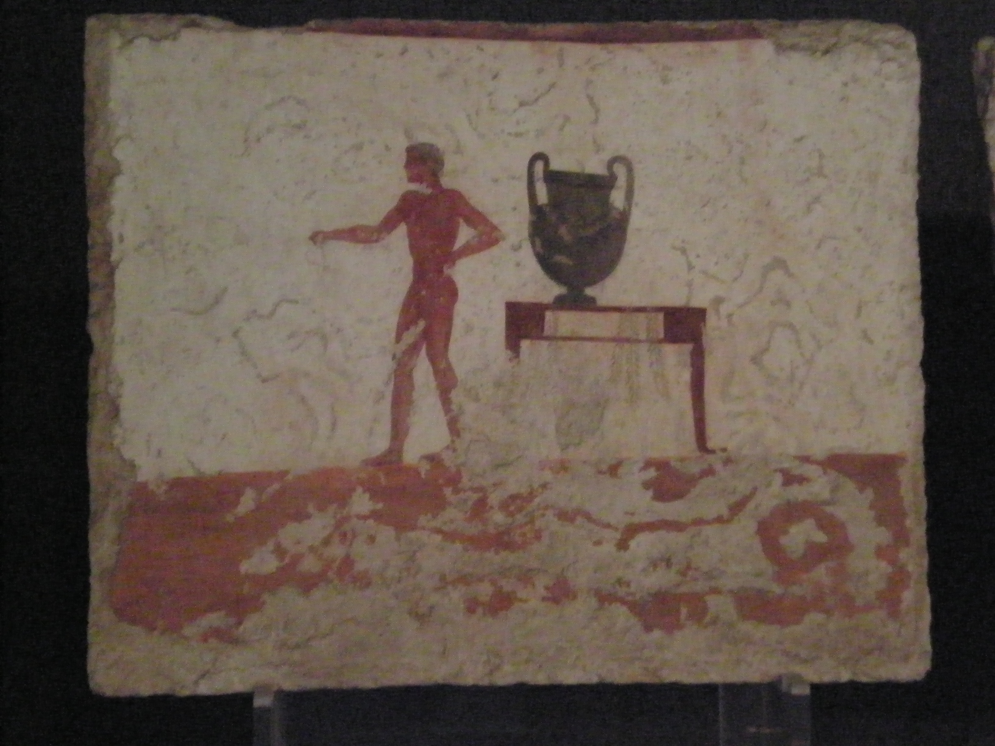 συμπληρώνεται μάλλον με ξίφος, ασπίδα και κράνος. Αποδίδει ένα πολεμιστή