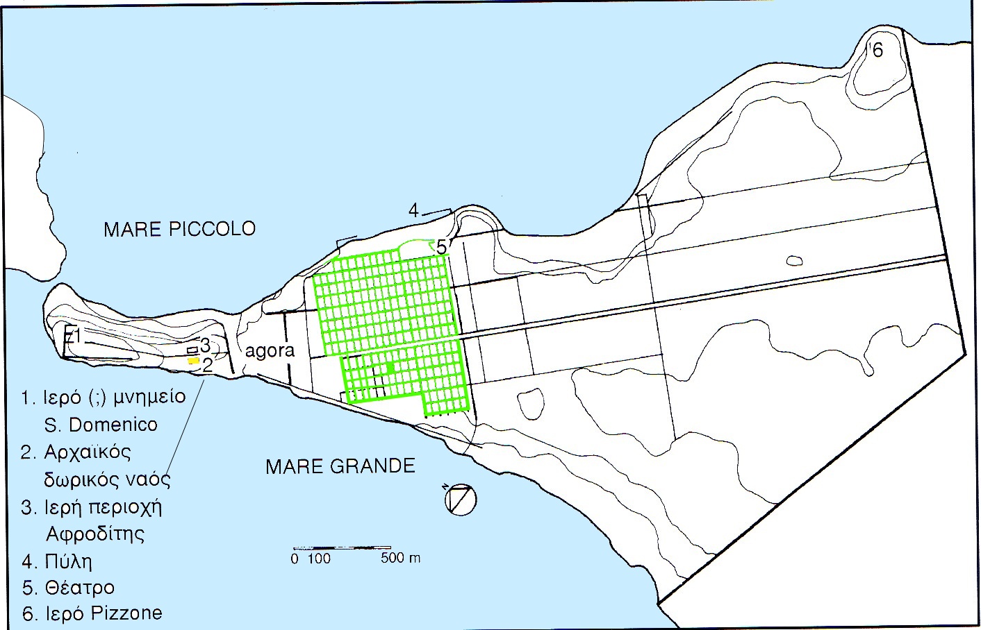 τη από τη στενή λωρίδα της χερσονήσου με ένα κανονικό ιπποδάμειο πολεοδομικό